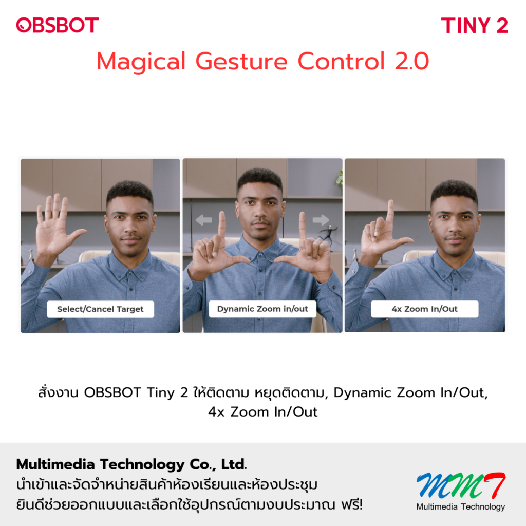 สั่งงาน OBSBOT Tiny 2 ให้ติดตาม หยุดติดตาม, Dynamic Zoom In/Out