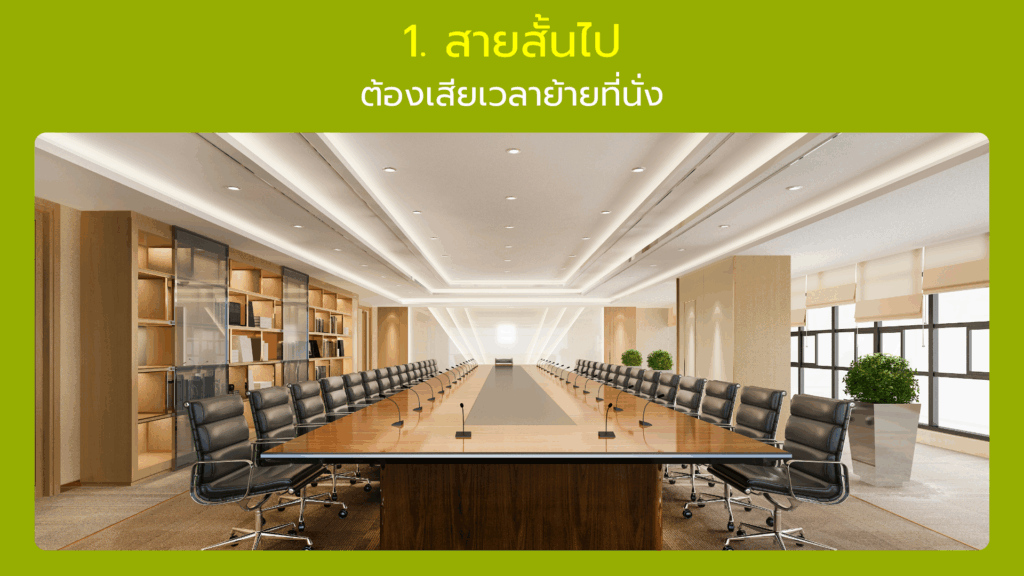 เสียบสาย ถอดสาย วนไปไม่มีที่สิ้นสุด – แต่ละคนต้องเดินไปเสียบเครื่องใหม่ แทนที่จะใช้เวลาแลกเปลี่ยนไอเดีย กลับต้องมารอคิว เสียเวลานาทีทองของการประชุมอย่างน่าเสียดาย